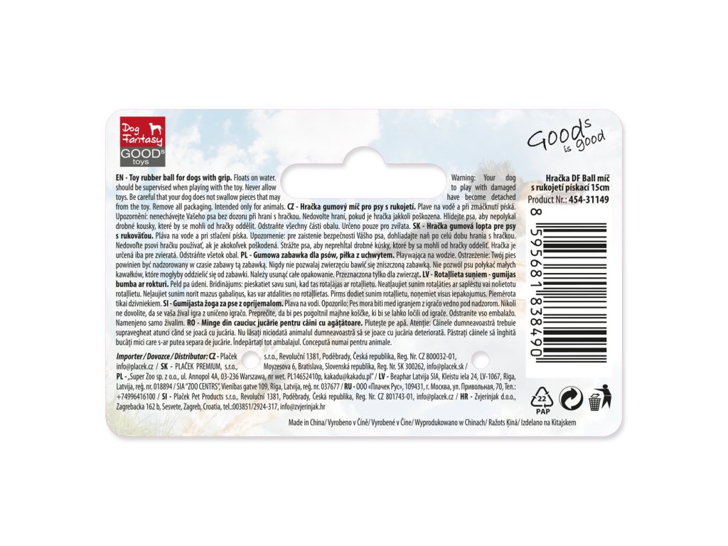 Nenechávejte Vašeho psa bez dozoru při hraní s hračkou. Nedovolte hraní, pokud je hračka jakkoli poškozena. Hlídejte psa, aby nepolykal drobné kousky, které by se mohly od hračky oddělit. Odstraňte všechny části obalu. Určeno pouze pro zvířata.