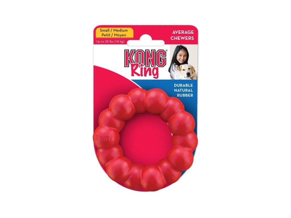 Gumová hračka KONG Kruh pro psy ze speciální, odolné gumy. Je vyrobena z ultra elastického, čistě přírodního kaučuku, který je velmi pružný a zároveň velmi odolný a pevný i pro největší ničitele hraček. Hračka má atraktivní tvar i povrch. Masážní výstupky psi milují, pomáhají jim čistit zuby, masírovat dásně a posilovat žvýkací svalstvo. Nerovný povrch je mnohem zábavnější než povrch hladký. KONG k výrobě hraček používá přírodní gumu, která je šetrná k zubům, odolná a netoxická.
