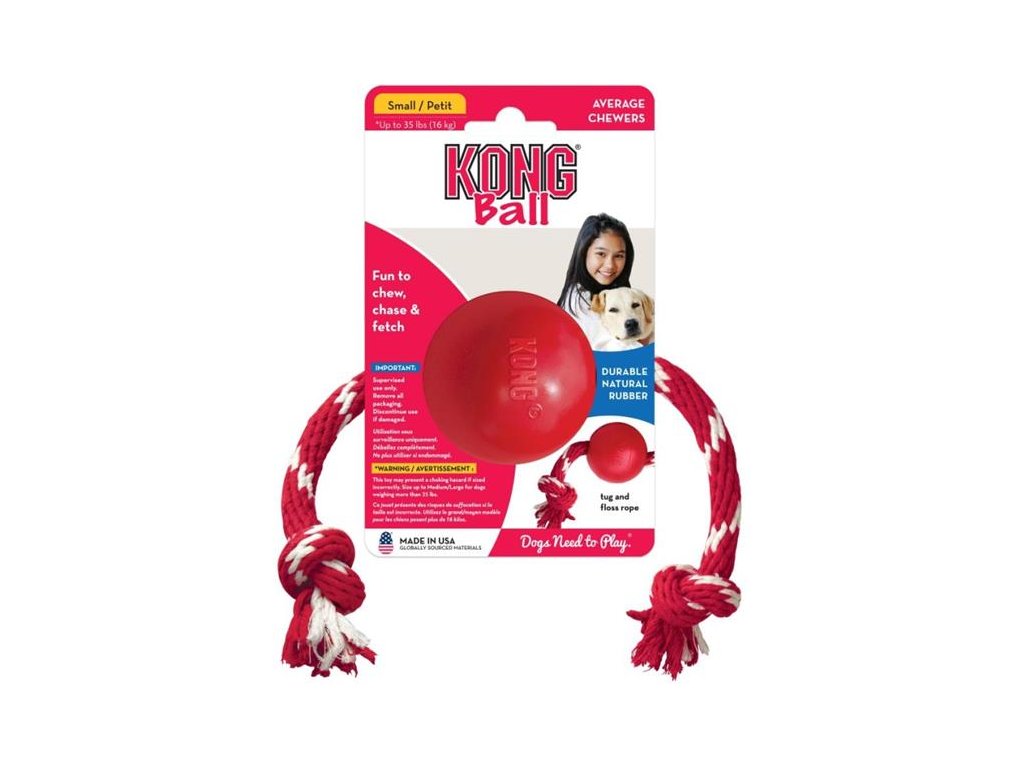 Gumová hračka KONG Míč na šňůrce je perfektní hračka pro psy, kteří milují aportovaní a žvýkání. Hračka je vyrobená ze speciální odolné gumy – přírodního kaučuku.