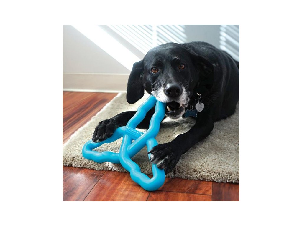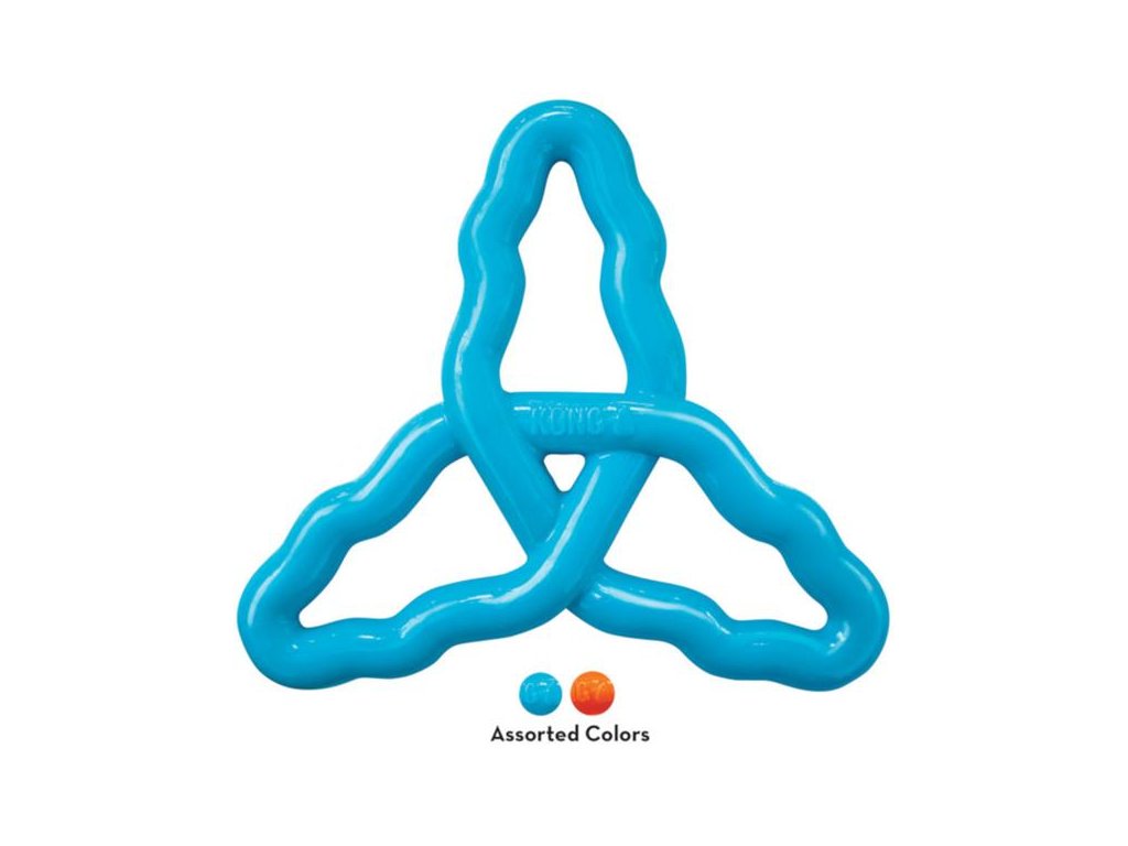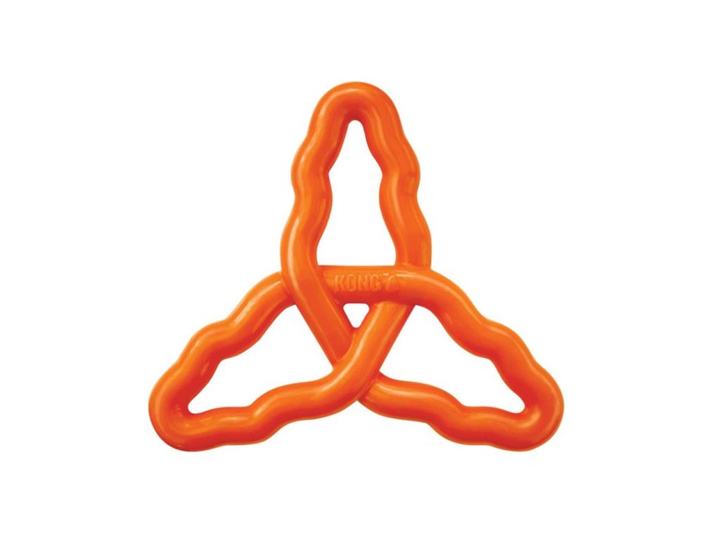 KONG Flyangle je interaktivní gumová hračka pro psy, která vypadá jako barevná propletená, zvlněná trojcípá hvězda. Její tři cípy slouží jednak jako rukojeti a úchopové body při vzájemném přetahování nebo aportování, ale současně zajištují, že se hračka při svém dopadu nepravidelně odráží. To udržuje vašeho psa ve vzrušeném napětí, tříbí se jeho smysly a zvyšuje se chuť k další hře.