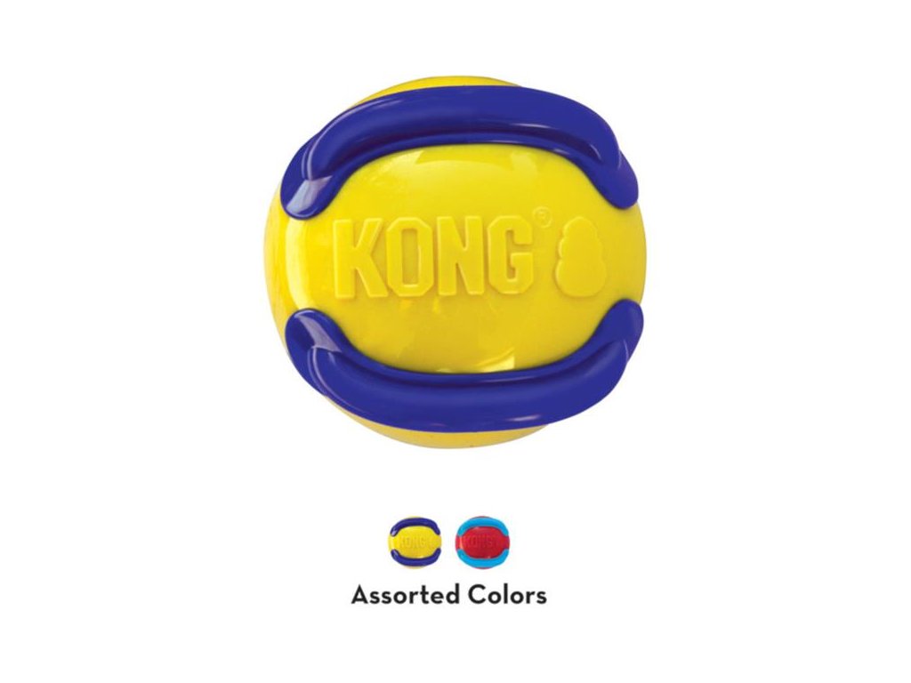 KONG Jaxx Brights Ball – výrazně zbarvený gumový míč se dvěma hřebenovými výběžky a pískátkem – je interaktivní hračka pro psy vyrobená z mimořádně odolných materiálů, které zaručují nekonečně dlouhou zábavu nejen při aportování a žvýkání. Díky plastickým hřebenovým výběžkům se míč při svém dopadu nepravidelně odráží a při jeho skousnutí se ozvou pískavé zvuky. To udržuje vašeho psa ve vzrušeném napětí, tříbí se jeho smysly a zvyšuje se chuť k další hře.