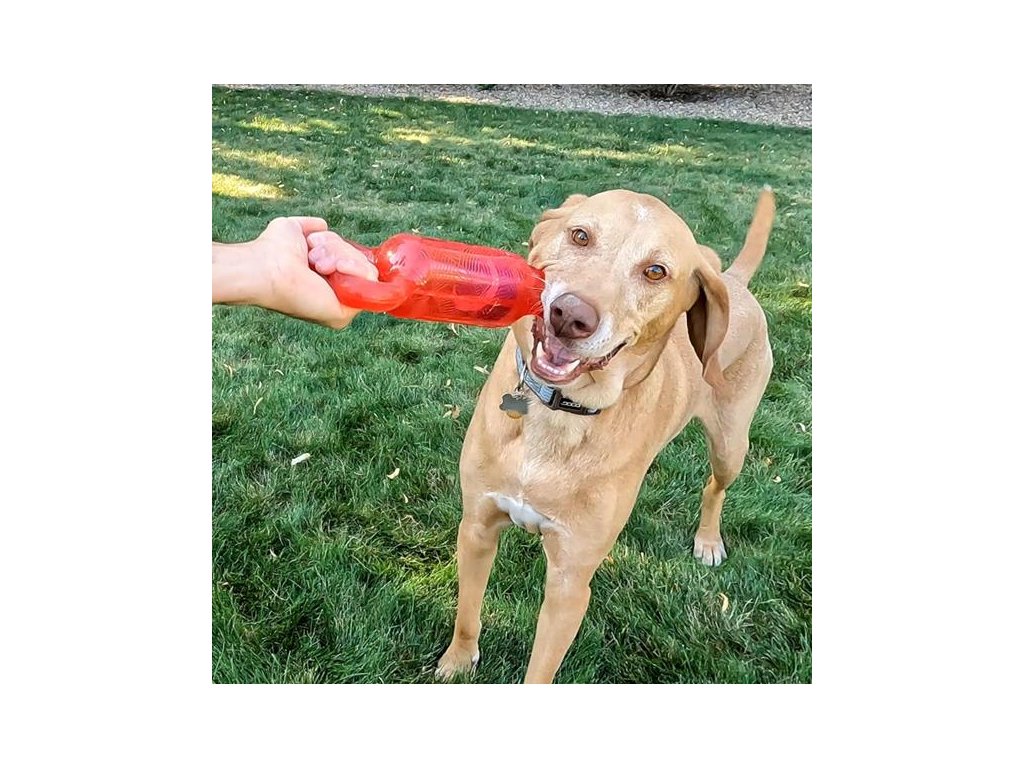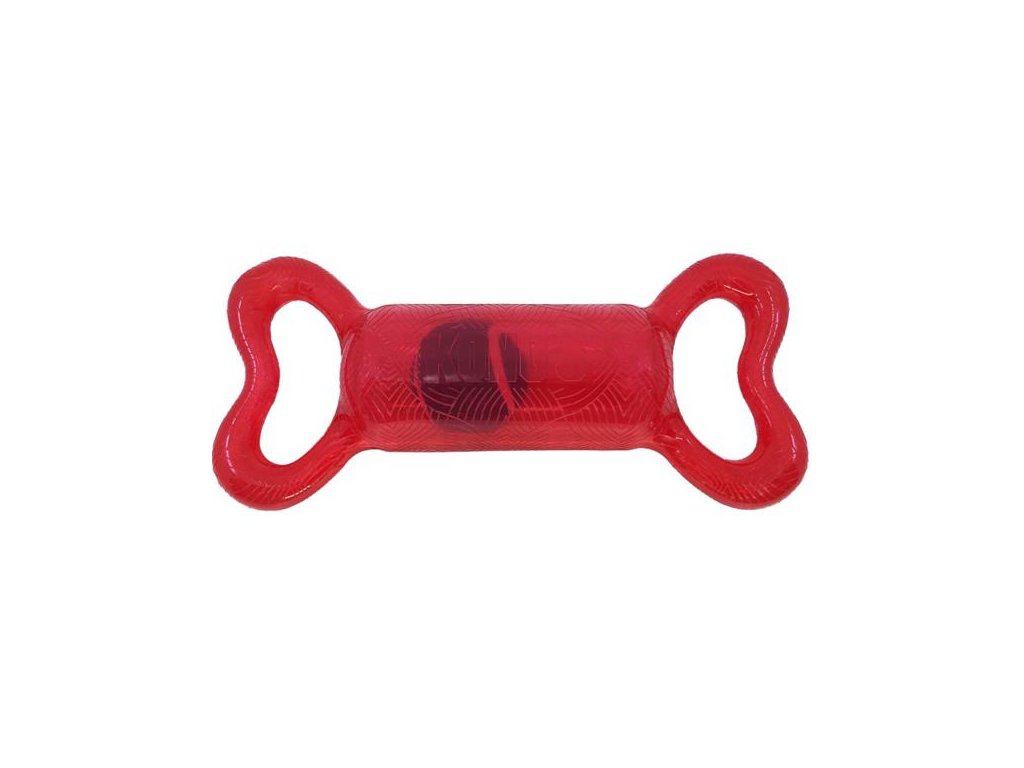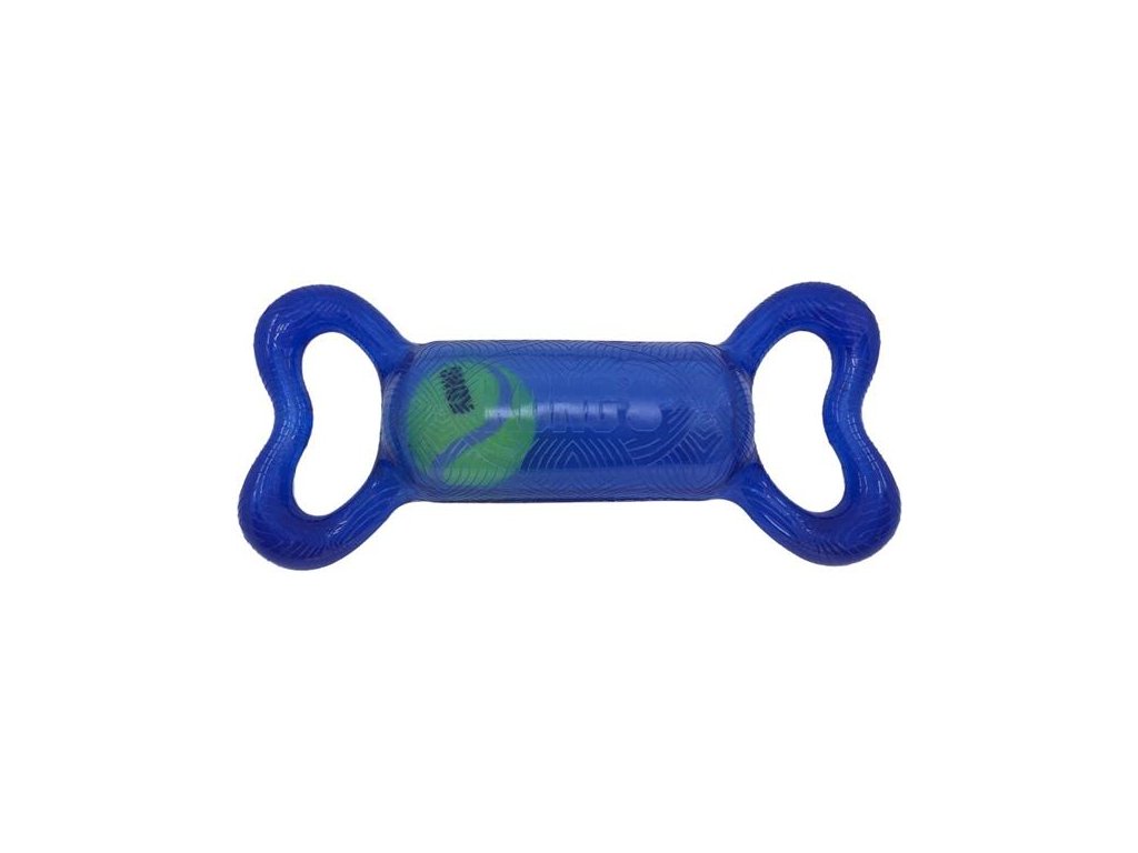 Gumová hračka z odolného materiálu je vhodná pro přetahování, energické lomcování i aport. Na obou koncích hračky ve tvaru kosti jsou madla pro pevný úchop. Držení usnadňuje a zpříjemňuje jemně texturovaný povrch. V dutém středu hračky se volně pohybuje tenisový míček, který při stisknutí hlasité píská. Díky pohybům míčku sebou hračka nepředvídatelně cuká, což ještě zvyšuje vzrušení ze hry.