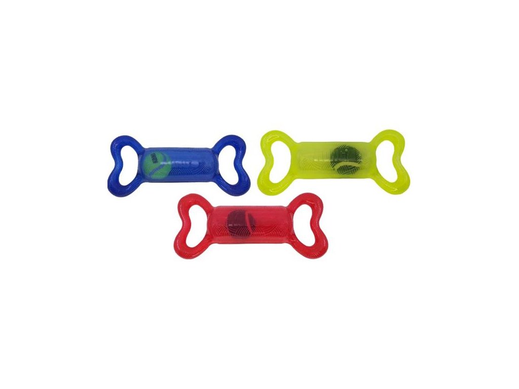 Gumová hračka z odolného materiálu je vhodná pro přetahování, energické lomcování i aport. Na obou koncích hračky jsou madla pro pevný úchop. Držení usnadňuje a zpříjemňuje také jemně texturovaný povrch. V dutém středu hračky se volně pohybuje tenisový míček, který při stisknutí hlasité píská. Díky pohybům míčku sebou hračka nepředvídatelně cuká, což ještě zvyšuje vzrušení ze hry.