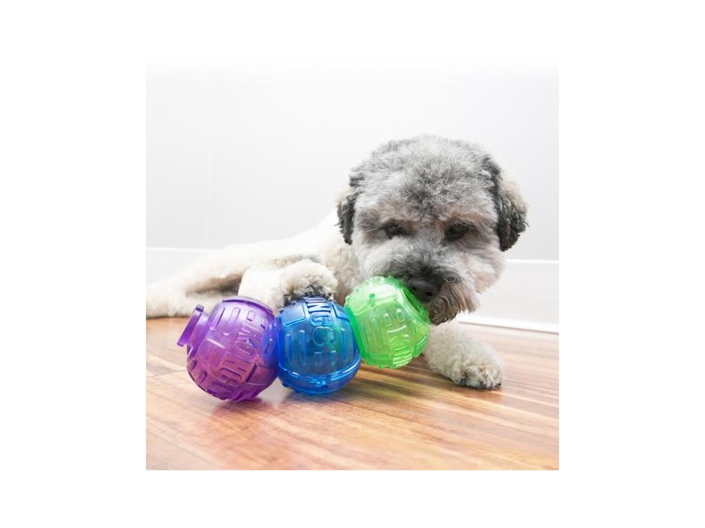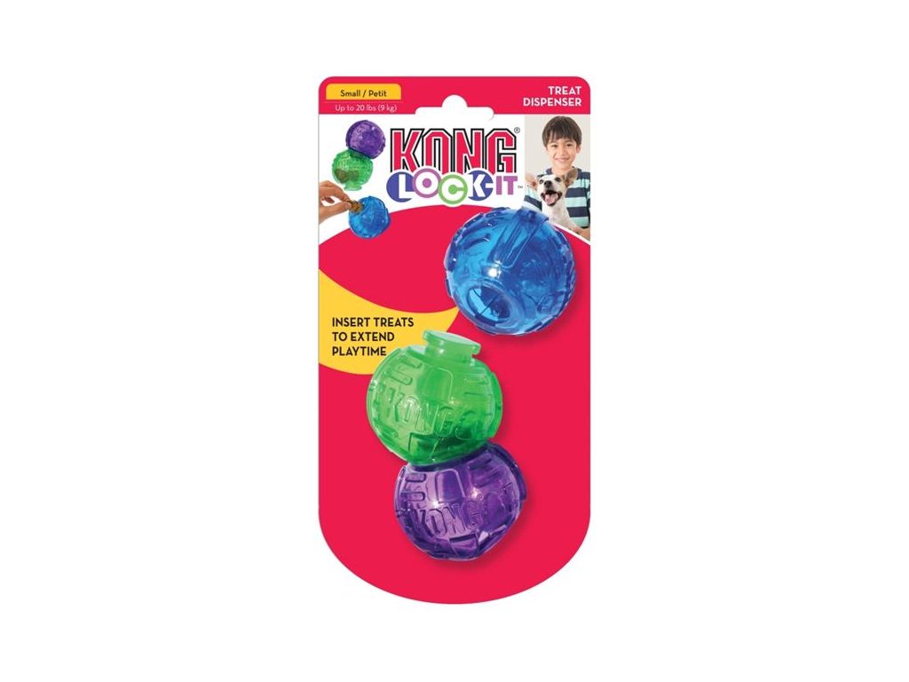 Interaktivní, plnitelná hračka KONG Lock-It je zároveň hlavolam a zpomalovací miska. Plnitelné míčky můžete využít na aportování, nebo jako interaktivní hádanku pro Vašeho psa. Naplňte míčky granulemi či pamlsky a tím začne zábavné a pomalé krmení.
