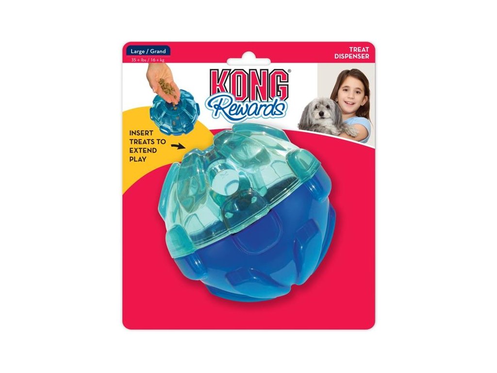 Interaktivní, plnitelná hračka KONG Rewards míč je zároveň hlavolamem a zpomalovací miskou. Plnitelný míč můžete využít jako aportovací míč nebo jako interaktivní hádanku pro Vašeho psa. Naplňte míč granulemi či pamlsky a tím začne zábavné a pomalé krmení.Velikost: L10,5 cm (průměr)Hmotnost 434 gMateriál: Elastická gumaBarva: ModráUpozornění: Hračka je určena k jemnému žvýkání. Hračka je určena pouze k použití pod dozorem. Není určeno jako hračka pro děti.