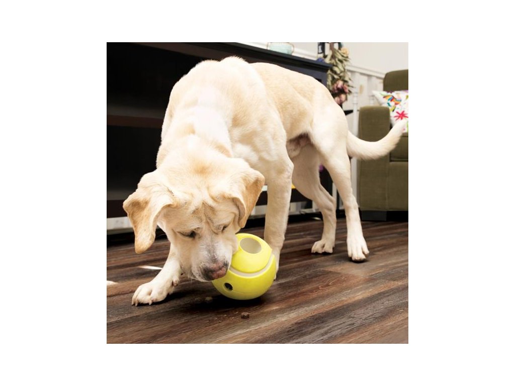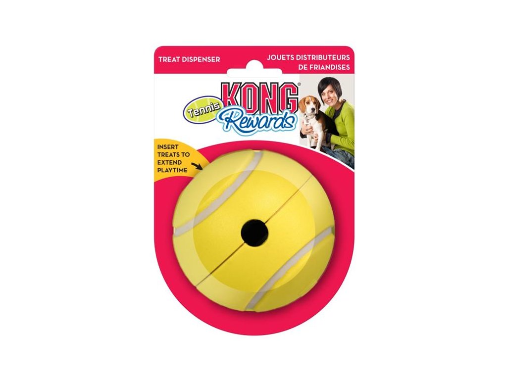 Míč KONG Rewards Tennis z tuhé, trvanlivé gumy může sloužit jako dávkovač krmiva, který povzbuzuje ke hře a aktivnímu pohybu (a je díky tomu ideální hračkou např. pro psy se sklonem k nadváze). Stačí jej naplnit granulemi nebo drobnými pamlsky a pomalé krmení může začít. Z kutálející se a poskakující hračky vypadávají laskominy jen po troškách a při vynaložení určitého úsilí. Bez práce zkrátka nejsou koláče, zasloužená odměna pak ale chutná o to lépe.