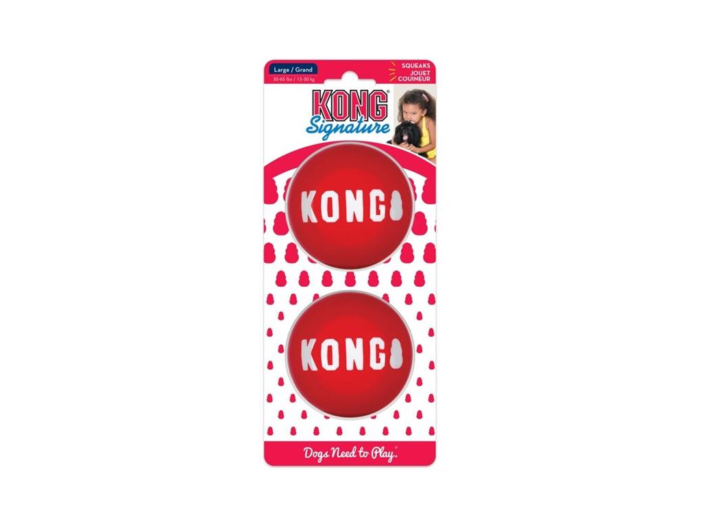KONG Signature Míčky vyrobené ze speciální odolné gumy – přírodního kaučuku. Perfektní hračka pro psy, kteří milují aportovaní a žvýkání. KONG je účinný výcvikový prostředek, který vyléčí mnohé nežádoucí chování: kousání nábytku, věcí, strach z odloučení, při přivykání na nové prostředí nebo zabránění nudě.