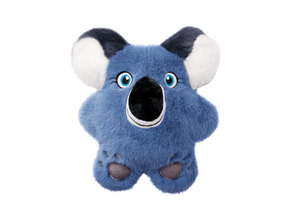 KONG Snuzzles Koala pro psy připomíná malý baculatý polštář s výrazně vyčnívajícím sametovým čumákem a zvlněnými okraji tvořenými koalíma ušima a roztaženými končetinami. Hračka je vyrobena z mimořádně hebkého a jemného plyše, který je velmi příjemný na dotek i žvýkání.