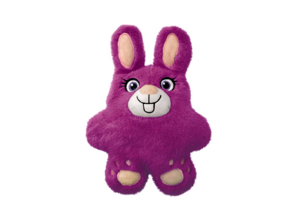 KONG Snuzzles Bunny pro psy připomíná malého baculatého králíka zploštělého do tvaru polštáře s výrazně vyčnívajícím sametovým čumákem a zvlněnými okraji tvořenými králičíma ušima a jeho roztaženými končetinami. Hračka je vyrobena z mimořádně hebkého a jemného plyše, který je velmi příjemný na dotek i žvýkání.