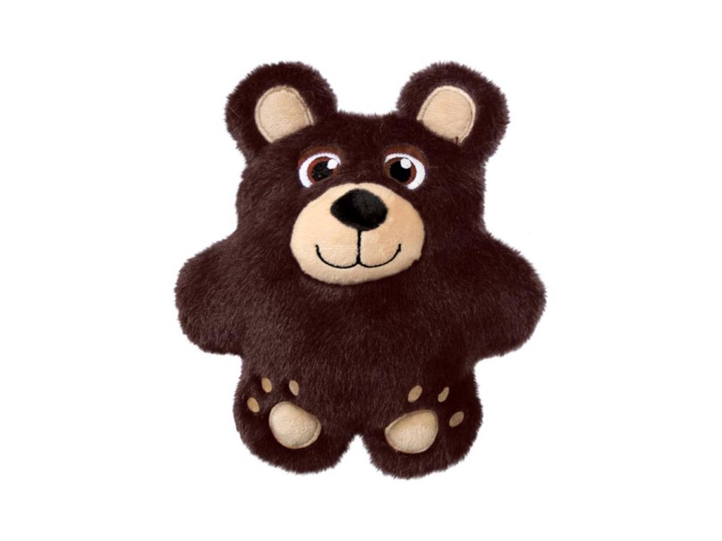 KONG Snuzzles Bear pro psy připomíná malého baculatého medvěda zploštělého do tvaru polštáře s výrazně vyčnívajícím sametovým čumákem a zvlněnými okraji tvořenými medvědíma ušima a roztaženými končetinami. Hračka je vyrobena z mimořádně hebkého a jemného plyše, který je velmi příjemný na dotek i žvýkání.