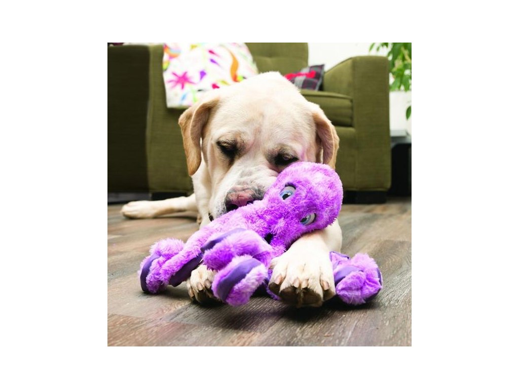 Chobotnice pokrytá vysokým hebkým plyšem má plandavá šustivá chapadla a v těle ukryté pískátko. Vybízí tedy nejen k mazlení, ale i k jemnému lomcování, kousání a přetahování.
