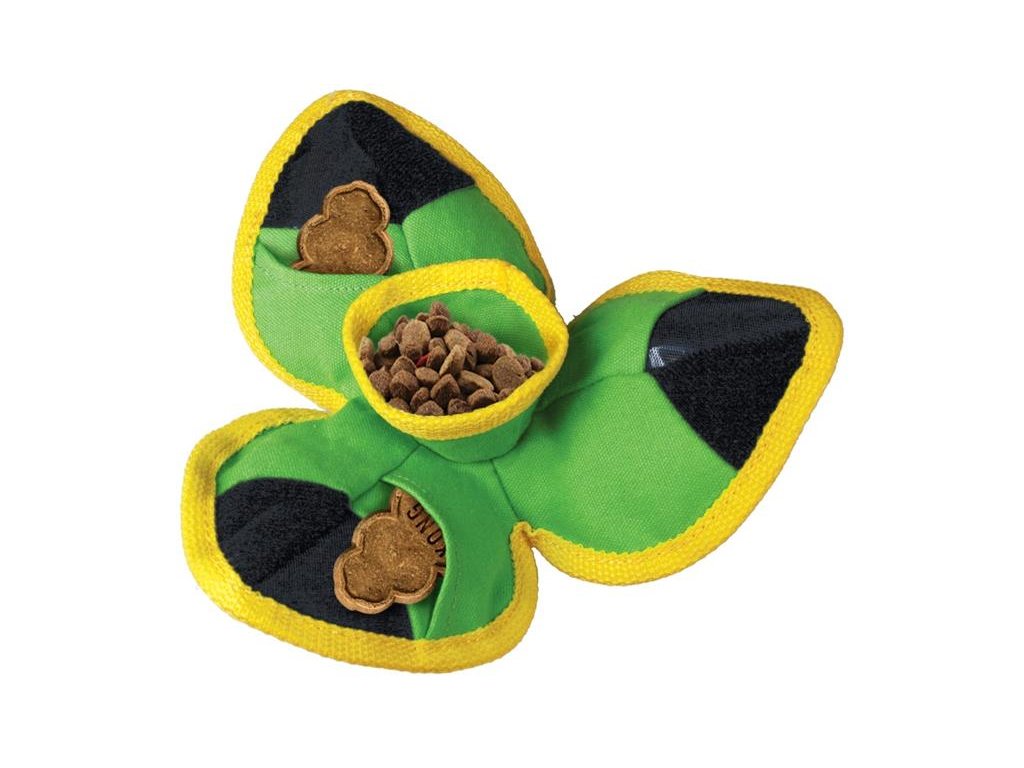 Míč ve svém nitru skrývá kapsy na pamlsky, které lze naplnit a Váš pes musí zapojit všechny své smysly, aby se k pamlskům dostal.