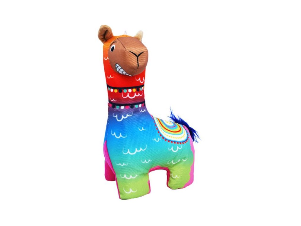 Veselá různobarevná lama pro psy KONG Ballistic Vibez je vyrobena z mimořádně pevného materiálu, který odolá drtivému stisku čelistí i zuřivému lomcování při přetahování. Hračku lze ale s úspěchem využít například při nácviku aportování, zatímco krátká ouška, huňatý ocásek a plyšové břicho svádí spíše k okusování a mazlení.