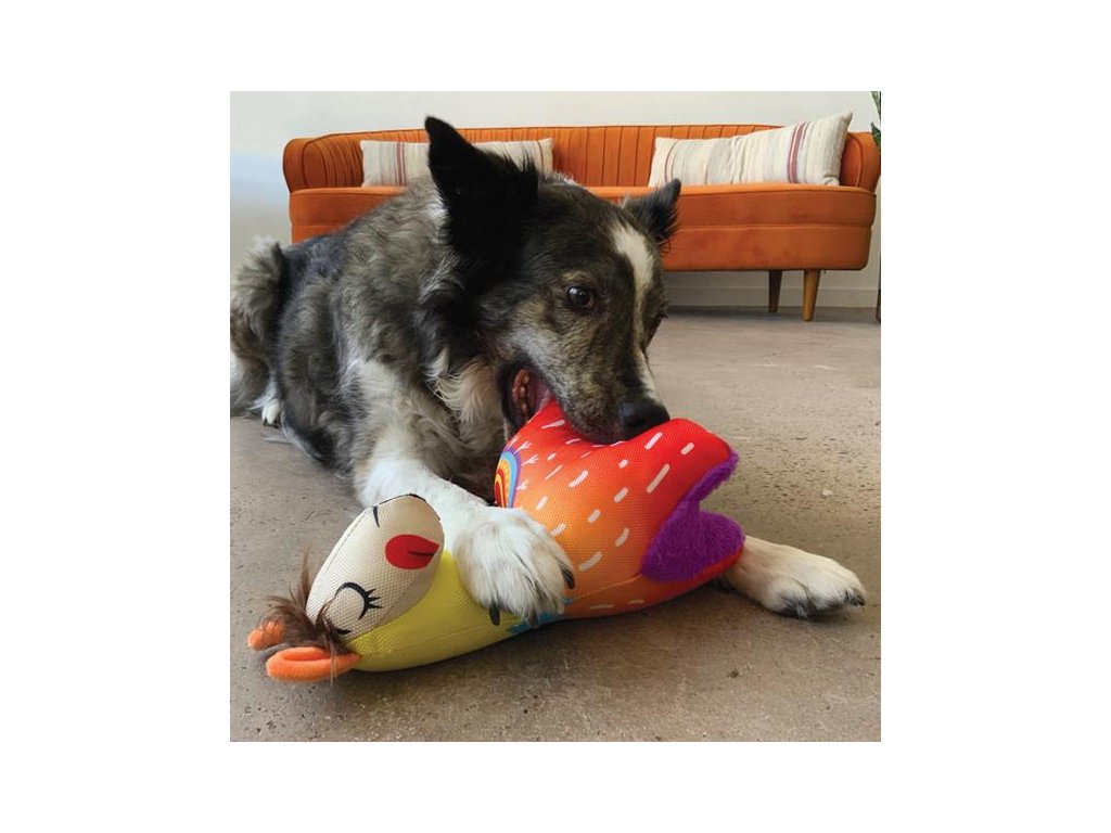 Lama navíc vydává pískavé zvuky, které stupňují zvědavost a vzrušení a podněcují přirozené psí instinkty. Díky dlouhému krku lze hračku snadněji přenášet i uchopovat, měkké tělo je příjemné na okusování a šetrné k zubům i dásním. Svými rozměry (velikost S/M) vyhovuje psům menších a středních plemen.