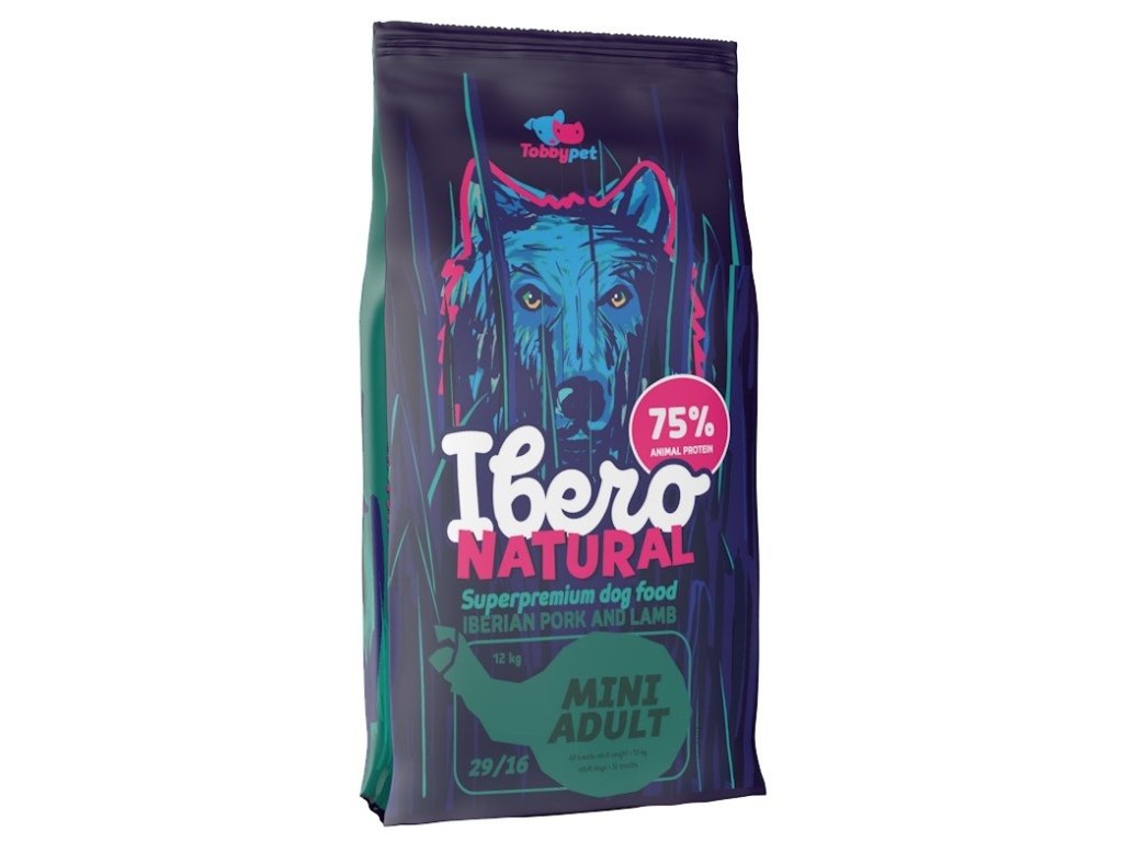 Na 12 kg pytel Ibero NATURAL se spotřebuje více než 18 kg čerstvého masa z iberského polodivokého prasete a jehněčího. Iberské vepřové není tak běžnou složkou potravy a pro psy je skvělým a lahodným ozvláštněním stravy.