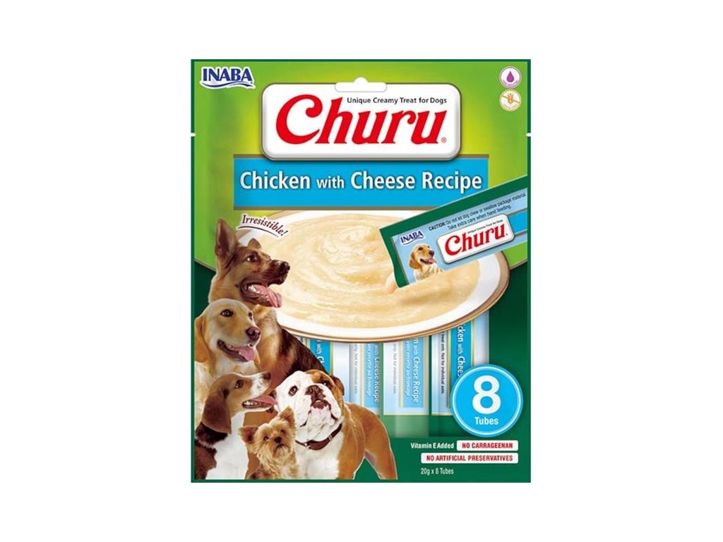Pyré pro psy s masem kuřat z farmářského chovu a sýrem. Lahodný pamlsek krémové konzistence bez obilovin, s nízkým obsahem kalorií, bez konzervantů, chemických aromat, barviv a umělých dochucovadel můžete díky unikátní krémové konzistenci podávat přímo z ruky, samostatně z misky nebo společně s granulemi pro vylepšení jejich chuti. Pamlsky Churu mají vysoký obsah vody a díky tomu jsou vhodným doplňkem k suchému krmivu, pro pohotovostní doplnění tekutin a pro psy, kteří málo pijí. Churu jsou ideální pro ukrytí tablety na odčervení či jiného léku, který je potřeba psovi nenásilně podat. 100% přírodní a zdravé mlsání pro psy všech věkových kategorií.
