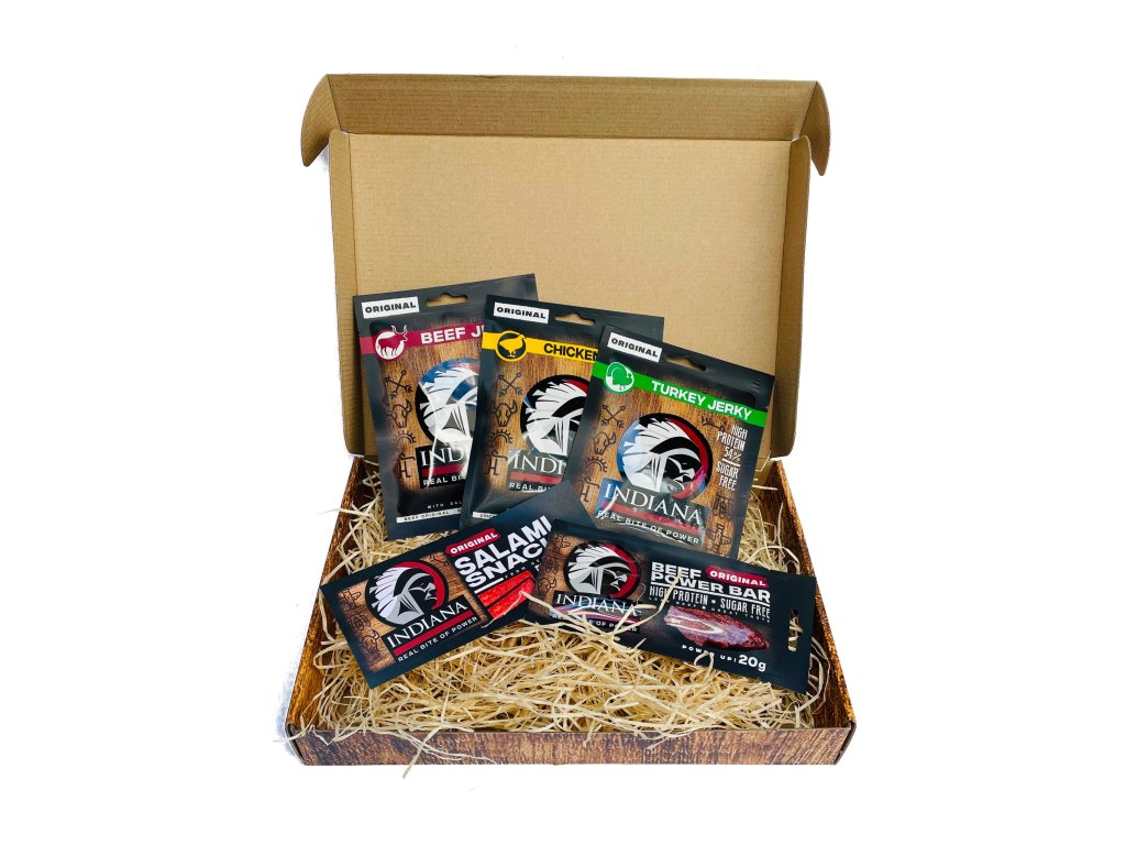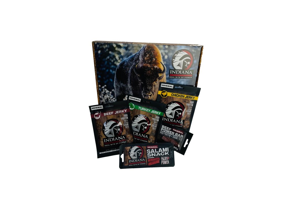 Sušené maso INDIANA Jerky v dárkovém setu je kombinace chutných masový snacků, které uvítáte převážně na cestách nebo při sportování. Každé balení pochoutky Jerky je plné hodnotných bílkovin, dokáže tak rychle doplnit energii například při horských pochodech nebo cyklovýletech. Výrobce Jerky vybírá pro své zákazníky jen to nejkvalitnější maso, navíc jsou produkty Jerky bez lepku i bez přidaných glutamátů.