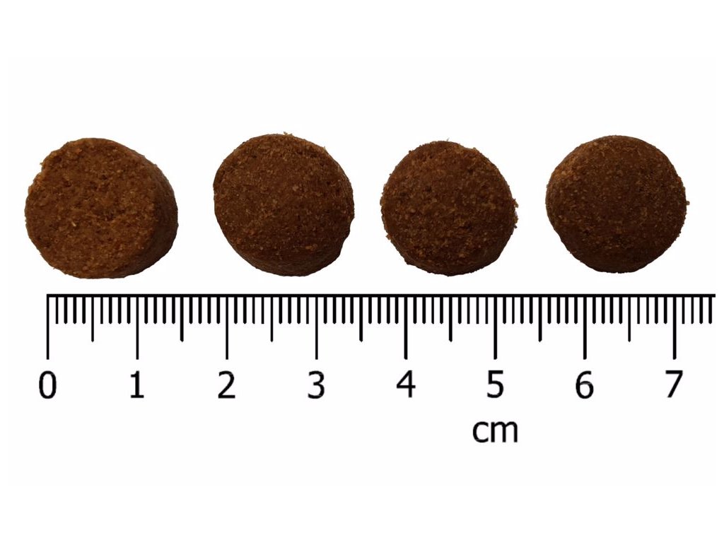 Analytické složky: Protein 27 %, hrubý tuk 15 %, hrubá vláknina 3,5 %, hrubý popel 7,5 %, vápník 1,3 %, fosfor 1,0 %, vlhkost 10 %.