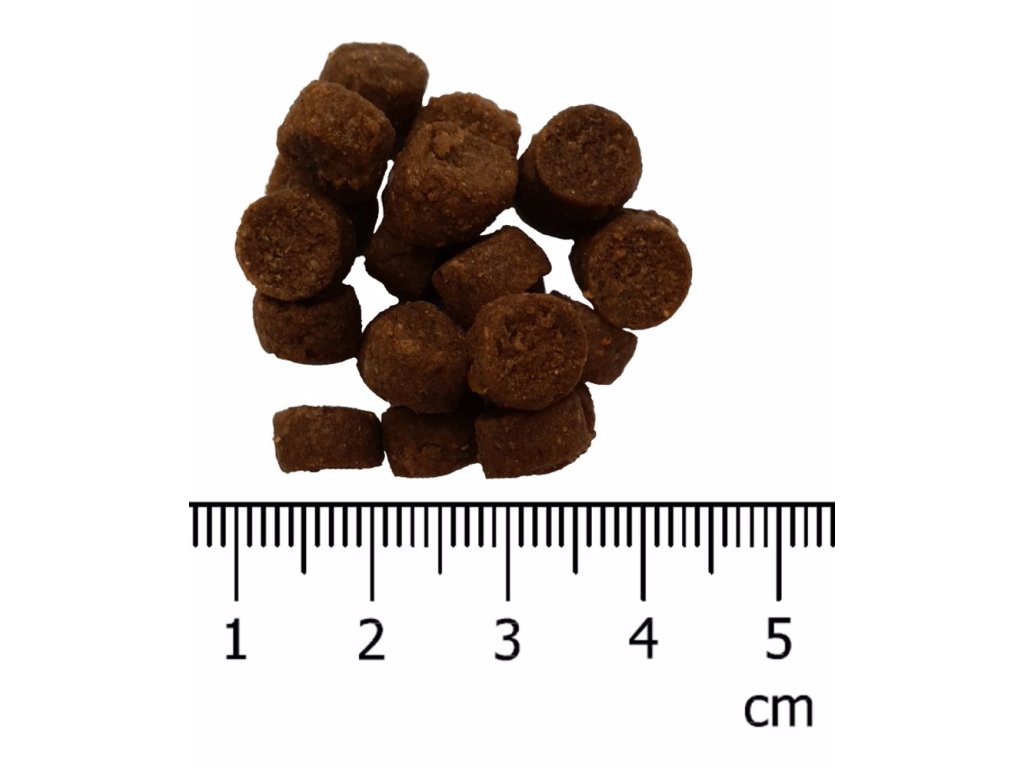 Analytické složky: Protein 28 %, hrubý tuk 16 %, hrubá vláknina 3,5 %, hrubý popel 7,5 %, vápník 1,2 %, fosfor 0,9 %, vlhkost 10 %.
