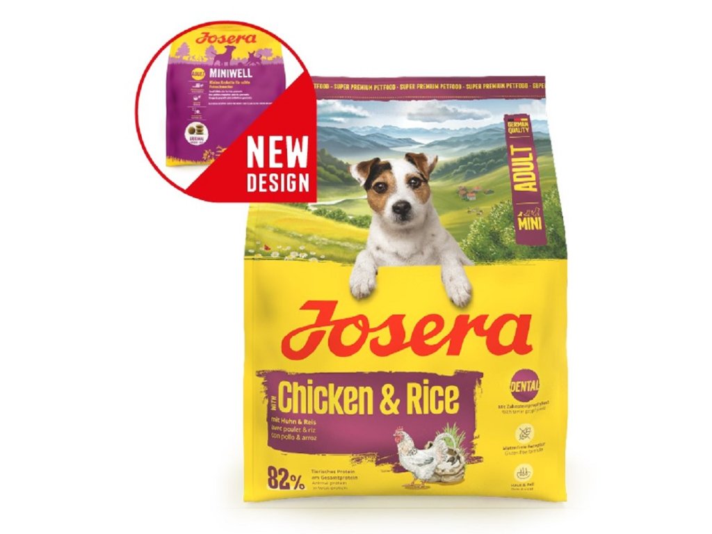 sáčku AromaSafe.Josera Adult Mini Chicken & Rice (původně Josera Miniwell) v přehledu:- vysoce kvalitní suché krmivo pro vybíravé psy malých ras- mini granule: XS granule, pasují do čelistí malých ras- intenzivní chuť: s výrazným aroma- zubní profylaxe: obsažené látky redukují riziko tvorby zubního kamene- zdravá kůže a lesklá srst: cenné mastné kyseliny, biotin, zinek a měď podporují zdravou kůži a srst- 100% bez barviv, aromat a konzervačních látek, bez genetických úprav- neobsahuje přísady, které mohou způsobovat alergie: pšenice, sója, cukr a mléčné produkty- vyrobeno v Německu: kontrolovaná kvalita ve vlastní laboratoři Josera
