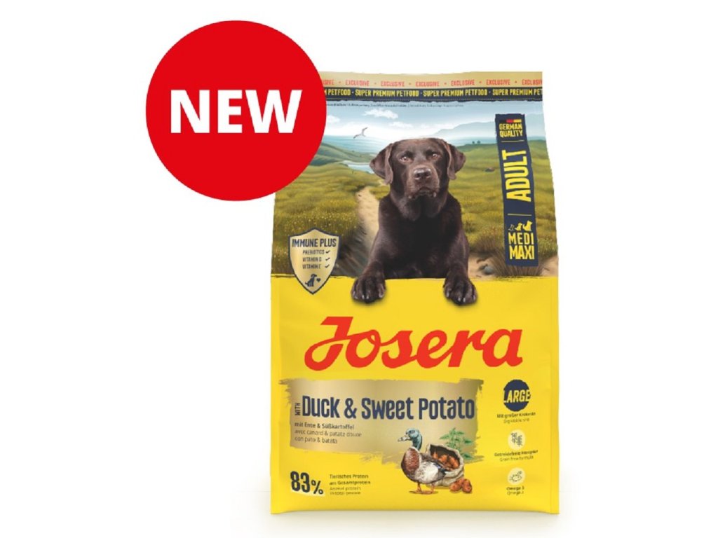 Cenné antioxidanty jako vitamíny C a E pomáhají v boji proti volným radikálům.Josera Medi/Maxi Duck & Sweet Potato v krátkém přehledu: - bezobilné krmivo pro dospělé psy s vysokou přijatelností