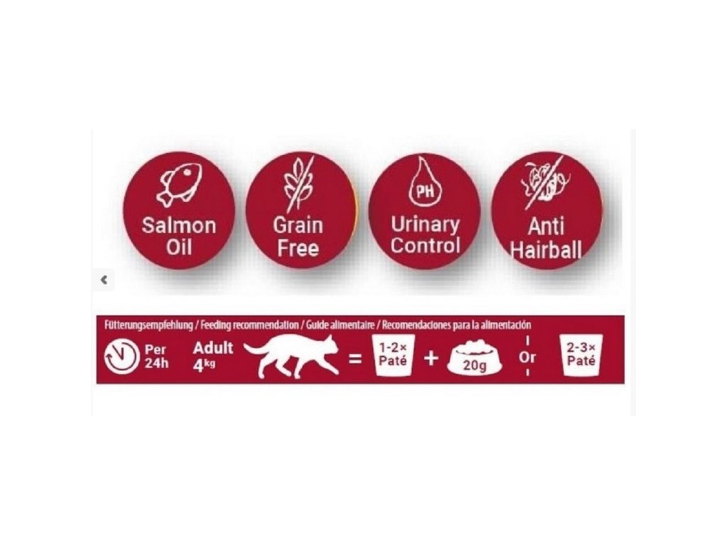 Mokré krmivo pro kočky ve formě kvalitní paštiky. Recepturu s krůtím masem a cuketou si každá kočka zamiluje. Kapsička je zcela bez obilovin a obsahuje esenciální mastné kyseliny a rostlinné vlákna proti chlupovým bezoárům.