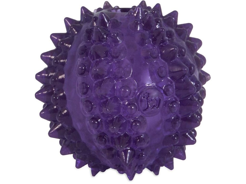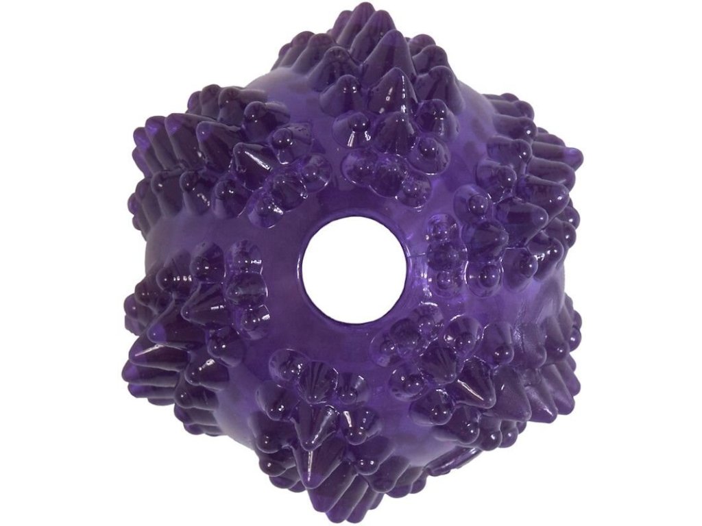 Malý gumový míček s výstupky a otvorem vevnitř je perfektní bezpečnou hračkou pro štěňátka a malé psy!
