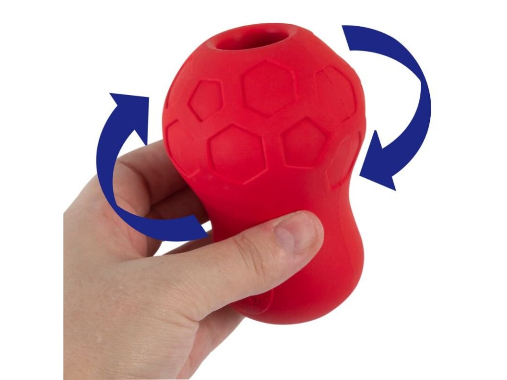 Díky svému speciálnímu patentovanému tvaru zabaví Vašeho pejska na delší dobu. Hračka se nepředvídatelné kolébá a odráží, přičemž pamlsky propadávají skrz patra a následně spodním otvorem ven.