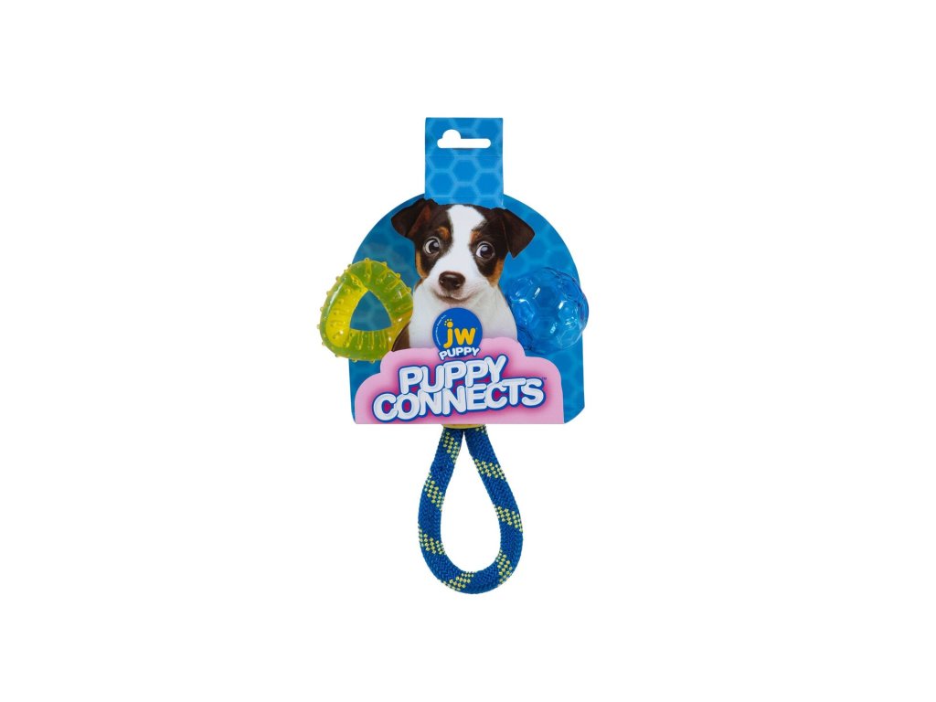 Více způsobů hraní! Díky přizpůsobitelné hračce JW Puppy Connects bude váš pes neustále zaměstnaný. Puppy Connects ukrývá v jedné hračce hned tři aktivity: odolný provaz, tvrdý kroužek na kousání a plastovou kuličku, která stimuluje všechny smysly vašeho psa.
