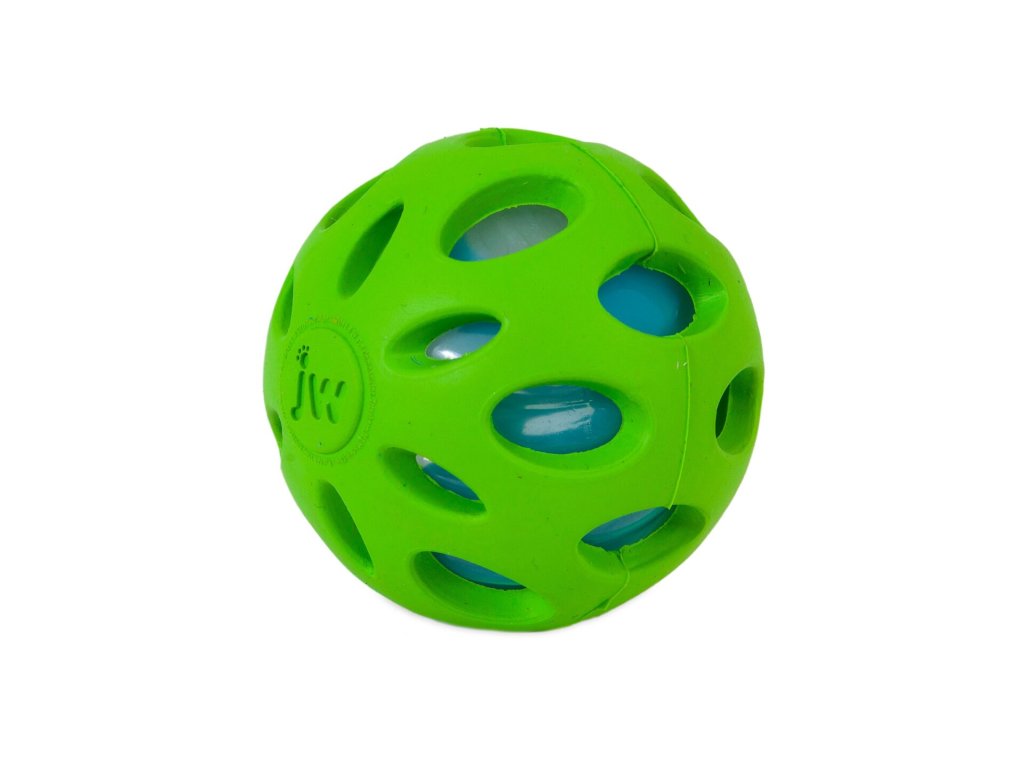 Míčky JW Crackle Heads jsou úžasné díky gumové vnější straně, která chrání křupající vnitřek vyrobený ze stejného materiálu jako PET lahve. Díky otvorům, které umožňují snadné uchopení, a trvanlivé, silné a odolné gumě je tato hračka ideální k házení a aportování nebo samostatné hraní.