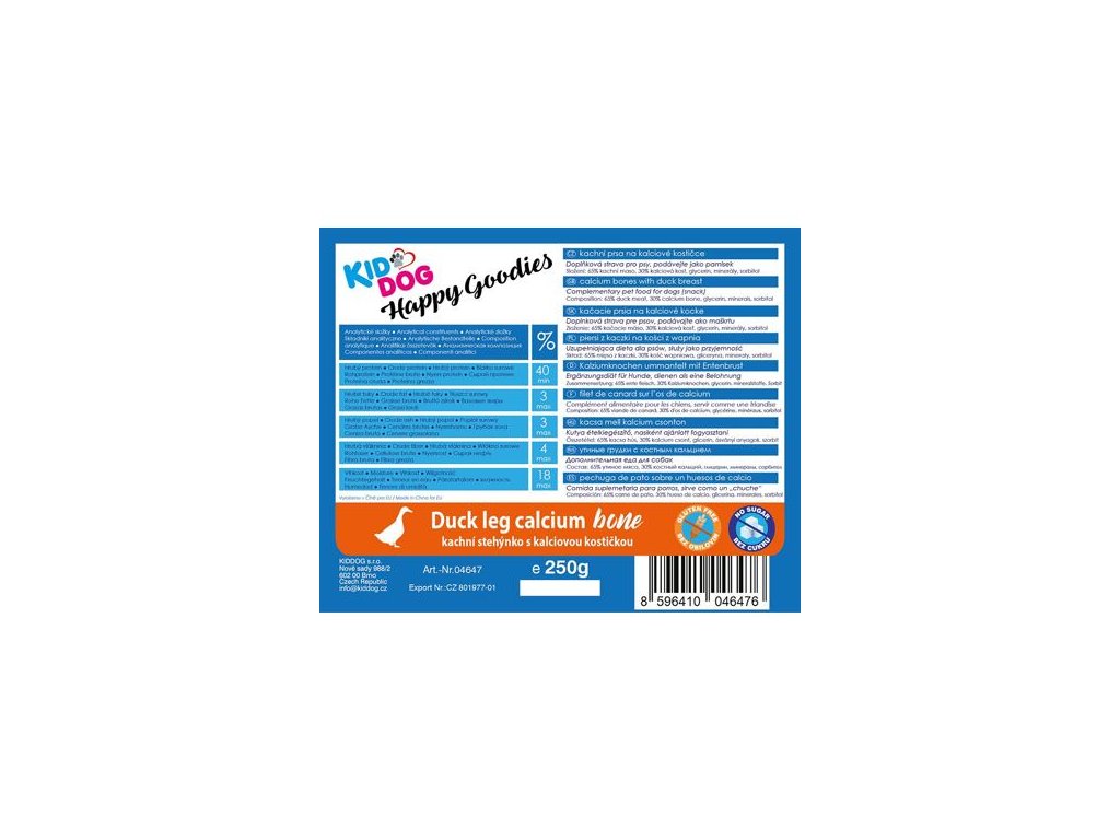 složení: 65 % kachní maso, 35 % kalciová kost, glycerin, minerály, sorbitol
