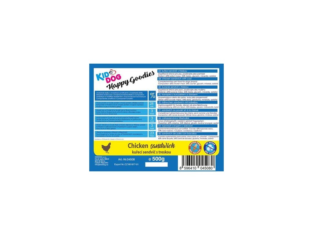 KIDDOG kuřecí sendvič s treskou 500 g