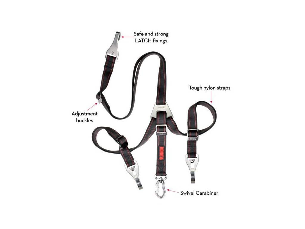 Bezpečnostní pásy lidem znemožňují pohybovat se v autě do stran ze sedadla na sedadlo nebo spadnout do prostoru pro nohy; bezpečnostní pás pro psa Ultimate Isofix zabezpečí vašeho psa podobným způsobem!