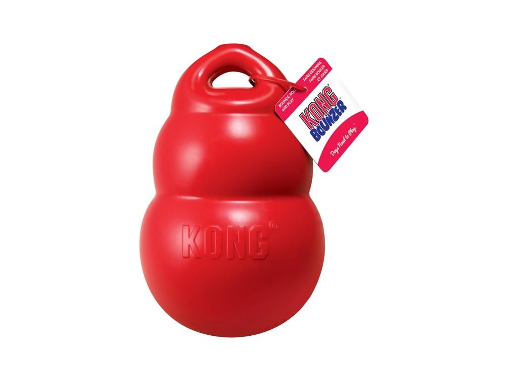 Hračka Kong Bounzer je ve tvaru již známého Kong granátu. Je však větší, elastický a při stlačení vydává slabý zvuk, kterým zaujme každého psa. Při stlačení a opětovném puštění se hračka naplní vzduchem a vrátí se do původního tvaru.