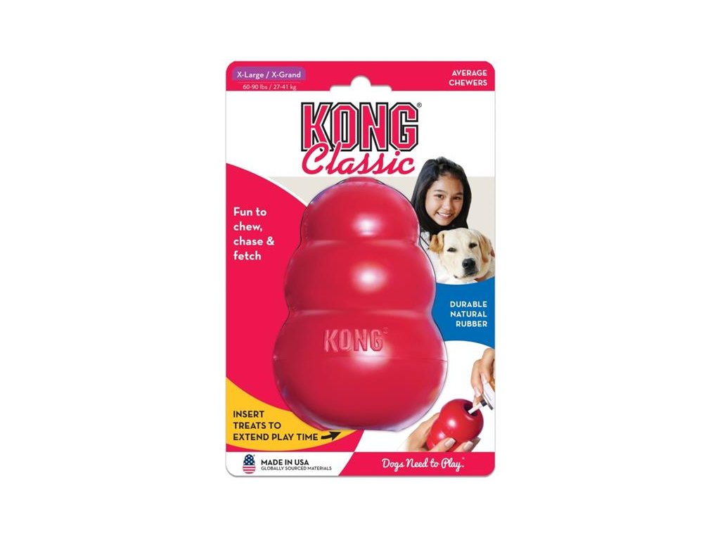 Jedinečný: Hračka Kong Classic skáče a hopsá zcela nečekaně všemi směry. Představuje báječnou výzvu při hře, která probudí lovecký instinkt psa. Především když ještě do středu hračky Kong umístíte nějakou oblíbenou pochoutku či pamlsek.