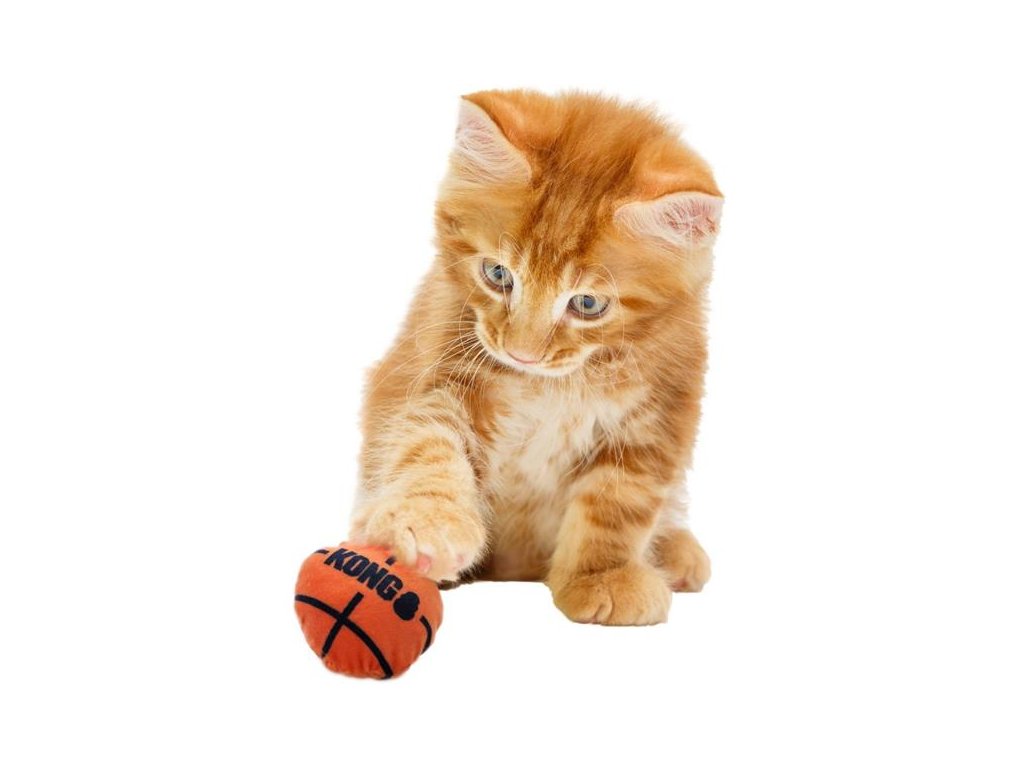 Lehké míčky KONG Cat Sport lákají kočku ke hře dvěma různými zvuky. Jeden z míčků šustí a druhý chrastí.