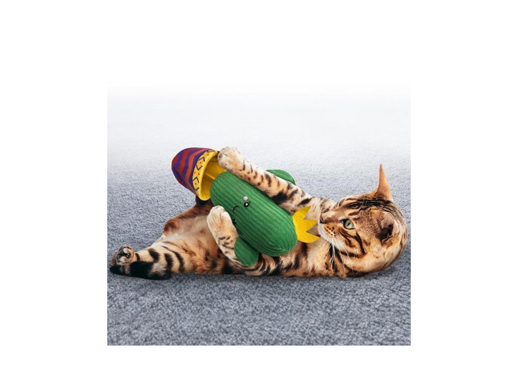 Extra dlouhý a měkoučký kaktus podněcuje lovecké instinkty a vybízí k zápasu a kopání celým tělem.