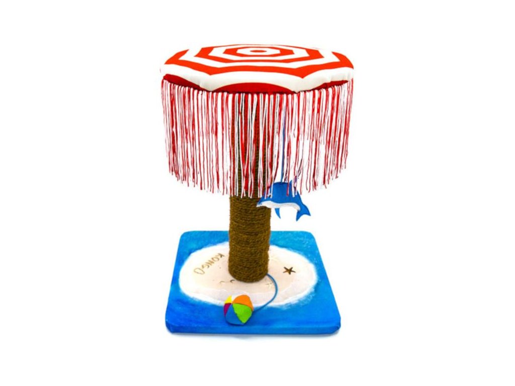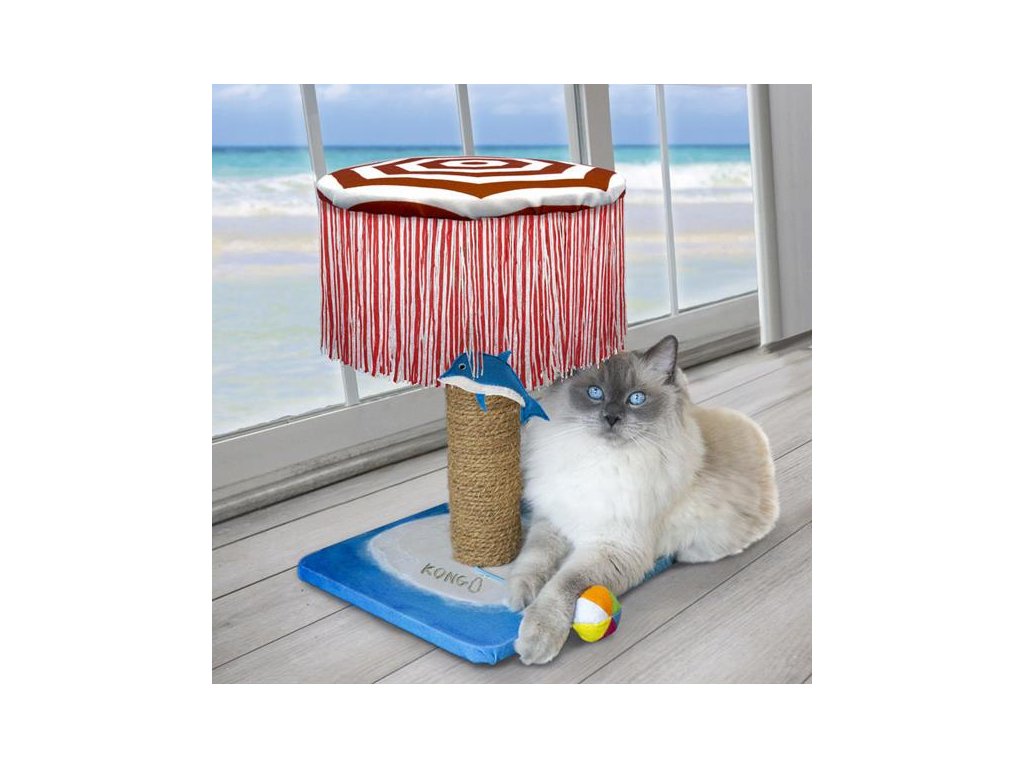 Play Spaces CATbana KONG napodobuje plážové přístřešky cabana určené pro relaxaci i zábavu. CATbana je multifunkční prostor pro kočky, který podporuje jejich přirozené chování, zažene nudu, poskytne místo pro odpočinek a přispěje k udržení dobrého fyzického a psychického zdraví. Měkoučký polstrovaný deštník stabilně ukotvený pomocí masivního sloupku do podstavce z překližky přímo vybízí ke skákání, protahování, lenošení či lelkování. Lze ho však využít i ke hře – je opatřený třepetajícími třásněmi, pod kterými se váš mazlíček může schovávat nebo do nich může plácat tlapkami a chytat je. Lovecké instinkty zase uspokojí malý delfínek zavěšený pod deštníkem nebo měkký barevný míček přivázaný ke sloupku. Obě hračky jsou navíc naplněny magickou šantou kočičí (catnipem), přírodní nenávykovou bylinou, která povzbuzuje ke hře až 70 % koček. Dostatečně vysoký sloupek omotaný přírodními vlákny poslouží k broušení drápků a dokonalému protažení celého těla. Vaše kočky si CATbanu prostě zamilují!