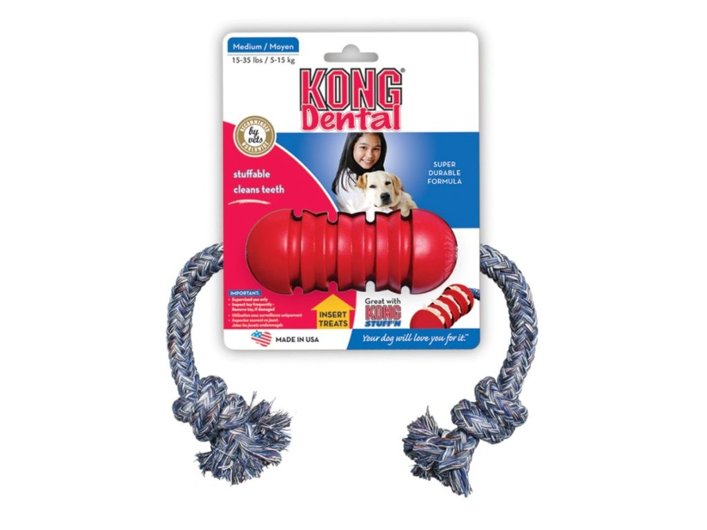 Kong Dental Medium dentální hračka s lanem 12cm