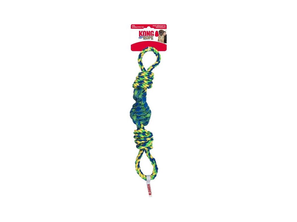 Pružící splétaný uzel KONG Rope Bunji má na obou koncích smyčku pro pohodlnější úchop v zubech a v ruce. Ideální hračka pro vnitřní i venkovní aktivity. Díky podlouhlému tvaru se psovi dobře nosí v tlamě.