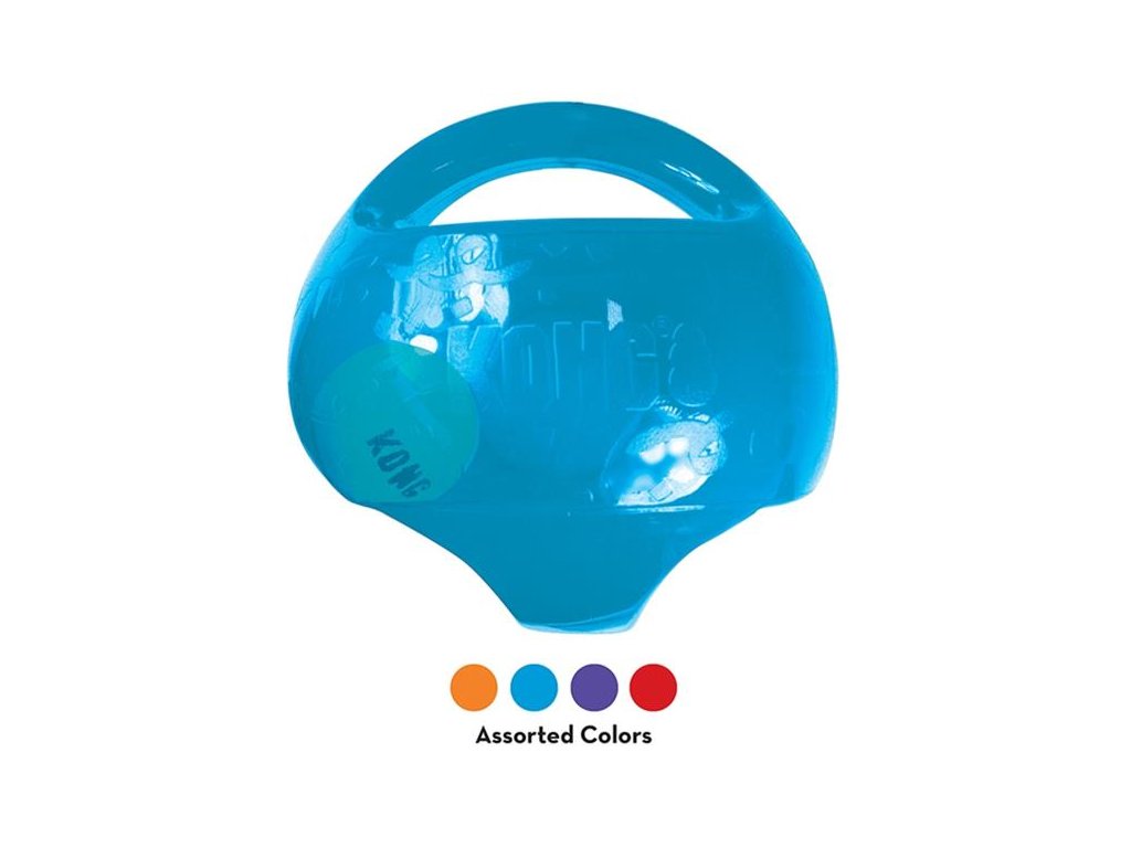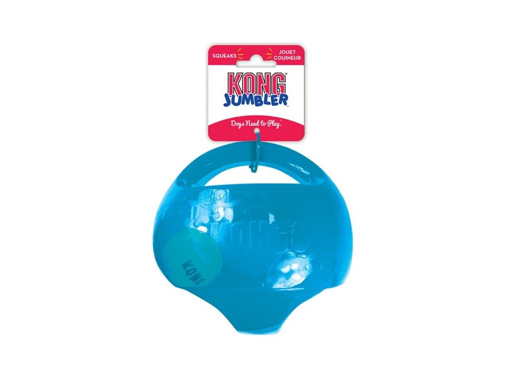 Hračka Kong Jumbler je skvělou interaktivní hračkou na házení, aportování a tahání se psem. Extrémně silný a protiskluzový povrch KONG Jumbler Balls je vyrobený z TPR (Thermo-Plastic-Rubber), udržuje hračku stabilní při žvýkacích útocích a příjemnou pro dásně a zuby. Proto je ideální pro házecí a aportovací hry. Obě držadla Vám pomohou Jumbler zvednout ze země, přetahovat se o něj, nebo jím třást i když je mokrý.