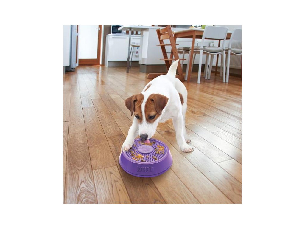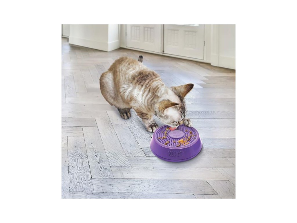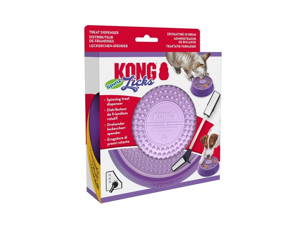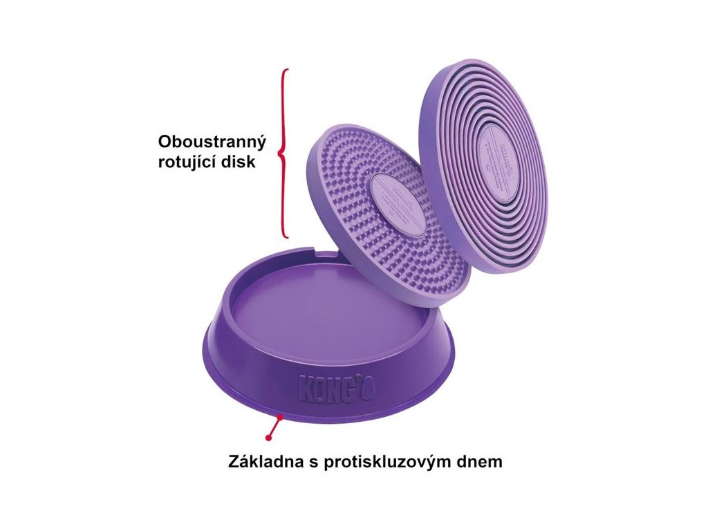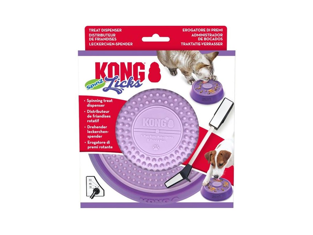 Interaktivní lízací podložka připomínající gramofonový talíř udělá z každého krmení párty! Do základny s protiskluzovým dnem je vložená podložka, do které lze zapravit pastu (např. KONG Easy Treat), konzervu či pamlsky. Lízací podložka je vyjímatelná, což usnadňuje její čištění, a oboustranná (z jedné strany má výstupky, z druhé drážky). V základně navíc rotuje, takže zvíře musí při krmení vynaložit větší fyzickou i mentální aktivitu. U psů a koček se sklonem k hltání může miska sloužit také jako zpomalovač krmení. Soustředěné krmení zahání nudu a zmírňuje stres. Lízání členitého povrchu masíruje a čistí jazyk a stimuluje tvorbu slin. Dobře prosliněná strava pak méně ulpívá na zubech a je snáze stravitelná. Miska Licks Spinz tak všestranně podporuje zdraví psů a koček.