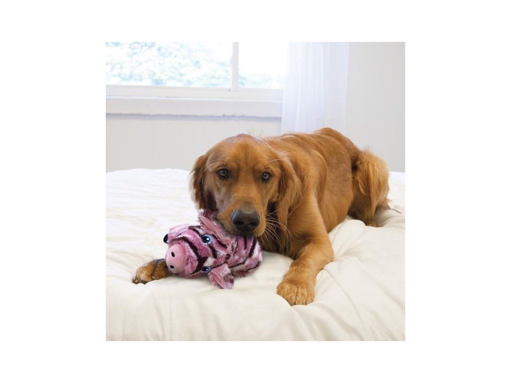 Prasátko z řady KONG Low Stuff Stripes je ušité z neodolatelně hebkého plyše, má plandavé tělo s minimem výplně a v něm ukryté pískátko pro větší vzrušení ze hry. Něžnější psí nátury se s ním mohou mazlit, pro dravější jedince může být neodolatelnou kořistí, kterou budou aportovat, nosit v tlamě, lomcovat s ní apod.