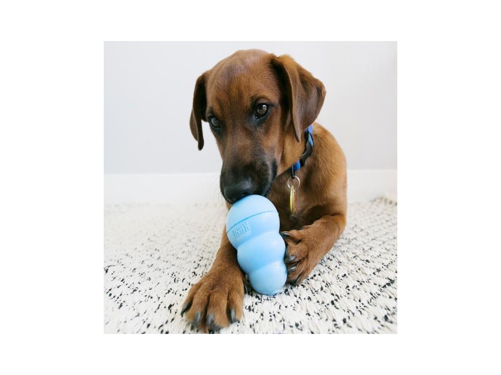 Velikost odpovídá potřebám štěňat. Hračka přispívá k zdravému vývoji zubů a žvýkacího svalstva. Z měkčí gumy než červený Kong, mimořádně vhodný pro štěňata a rasy psů s né tak silným stiskem.