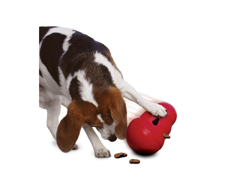 Jak to funguje? Naplněný Kong Wobbler Snackball se postaví na zem. Jakmile do něj Váš čtyřnohý miláček šťouchne čumákem nebo packou, začne se kutálet po zemi do nepředvídatelných směrů a snacky či krmivo z něj postupně vypadávají dírou na boku. Pejsci se velmi rychle naučí, že pokud budou do hračky šťouchat, dostanou pamlsky, ale tím, že se hračka pohybuje velmi nepředvídatelně, nikdy to nebude nuda!