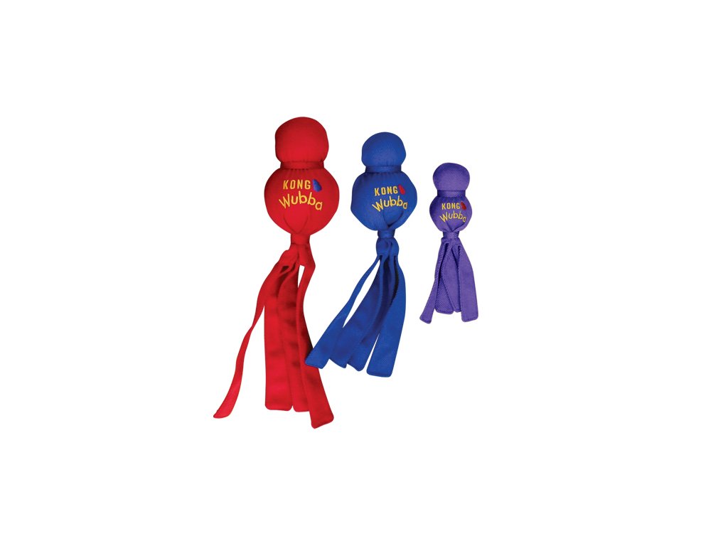 Skládá se ze dvou rozdílně velkých míčků, které jsou potažené mimořádně odolným nylonovým materiálem. Součástí většího míčku je pískátko. Díky dlouhým třásním je hračka Kong Wubba vhodná k aportování. Díky tvaru je hračka Kong jako házecí hračka nevypočítelná a tedy ideální k aportování při sportu se psem. Jak pro psa, tak i jeho páníčka představuje tato hračka zdroj zábavy a legrace!