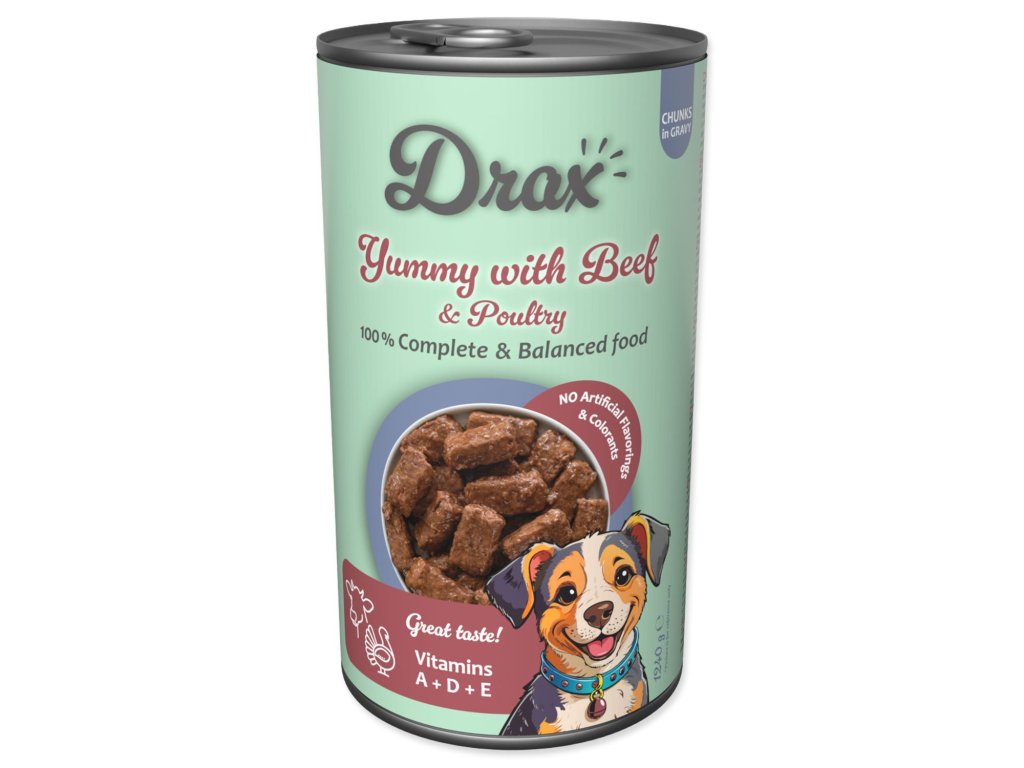 Konzerva Drax Adult s hovězím a drůbežím 1240g