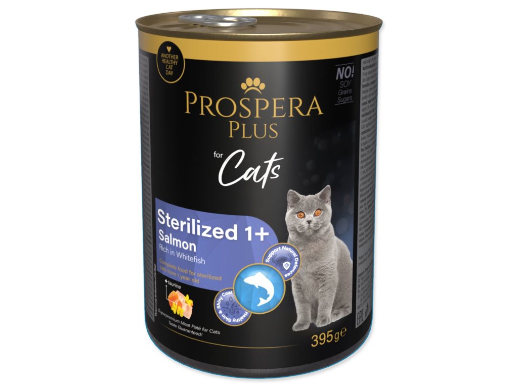 Konzerva Prospera Plus Sterilized 1+ Lososové paté bohaté na bílou rybu 395g