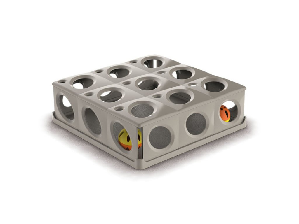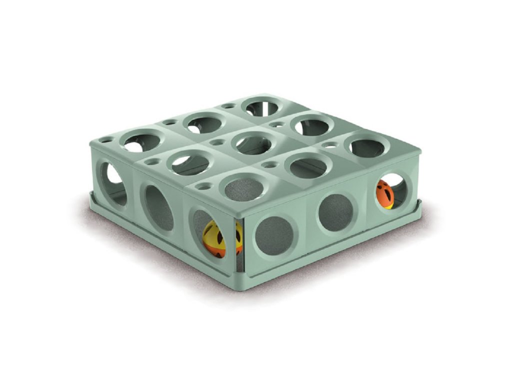 Hračku lze otevřít a přidat do ní oblíbený míček, myšku apod.Pastelové barvy : šedomodrá, zelená, béžová. Dodávaná barva dle aktuálních skladových zásob.