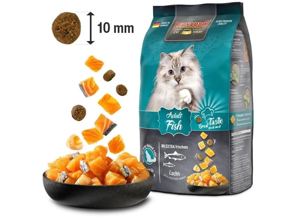 Špičkové granule Leonardo s lososem pro dospělé kočky, které milují čerstvé ryby Tělo samý svalLosos a mořské ryby jsou nabité rybími bílkovinami a tělo vaší šelmy bude brzy samý sval. Vítěz nad každou nemocíMá vaše kočka na gauči své místo? Nebo už celý gauč patří jí? Čistě přírodní pivovarské kvasnice pomáhají tvořit imunitu u kočičích dobrodruhů i u koček, které pozorují přírodu jen z okna. Nová energie do každého dneŽito je čistě přírodní zdroj energie a síly a kočky milují jeho chuť. Taky vás to překvapilo? Vyzkoušejte a uvidíte, že se bude oblizovat až za ušima.